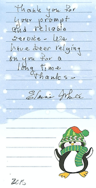 Thanks again for coming out on Christmas Eve and repairing our furnace!!
