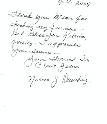 Thank you Mance for checking my furnace – God Bless you Katrina/family. I appreciate your service – Your friend in Christ Jesus,
