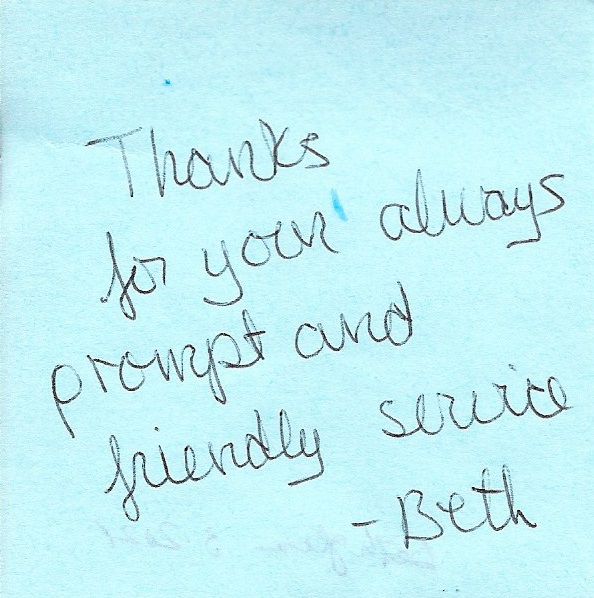 Thank you for your prompt and reliable service – We have been relying on you for a long time. Thanks-